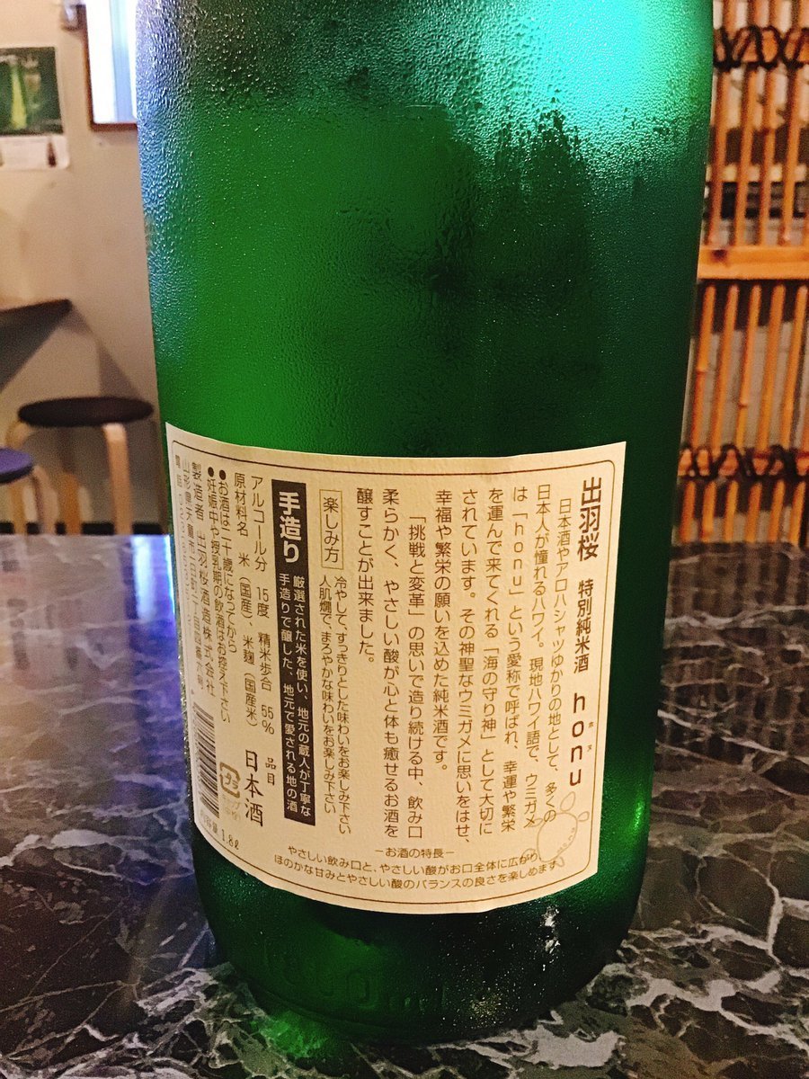 ウミガメのことをハワイ語でhonu(ホヌ)といい、幸福・繁栄・神様からの使いと言われ海の守り神として大切にされています🐢そんな思いを馳せて作られたこのお酒は柔らかな飲み口でやさしい酸と旨味が調和し、心と体を癒してくれる味わい☺️